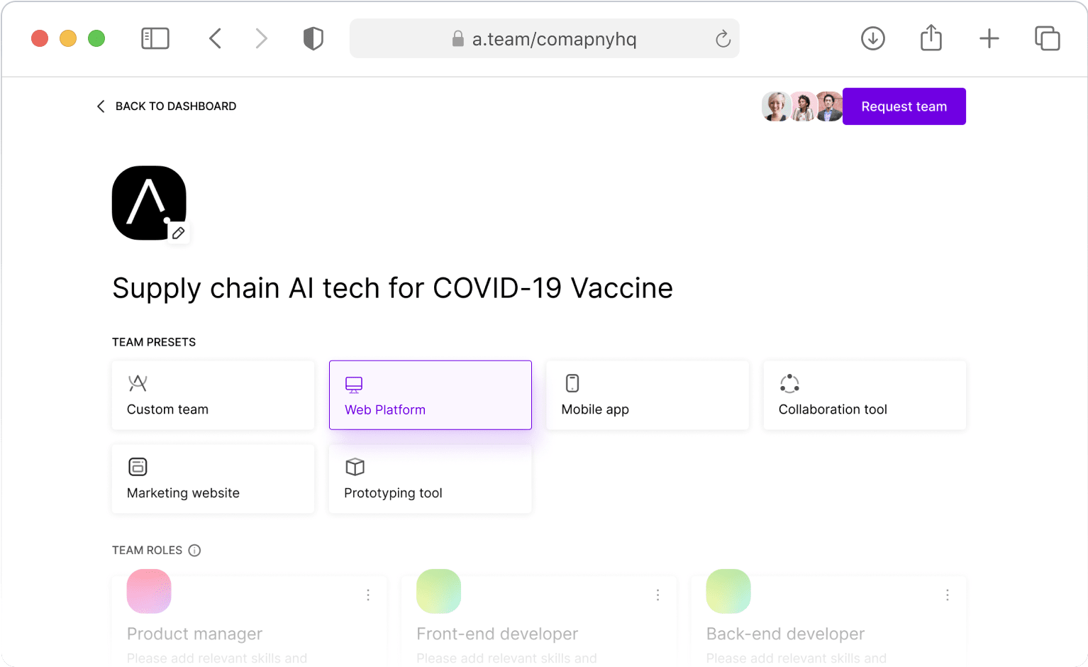 You have an idea or a plan for a product. But you need the team to deliver your vision. Build an A.Team from scratch as your core product team — or as an additional team to work on additional lines of business (while keeping your core team focused).