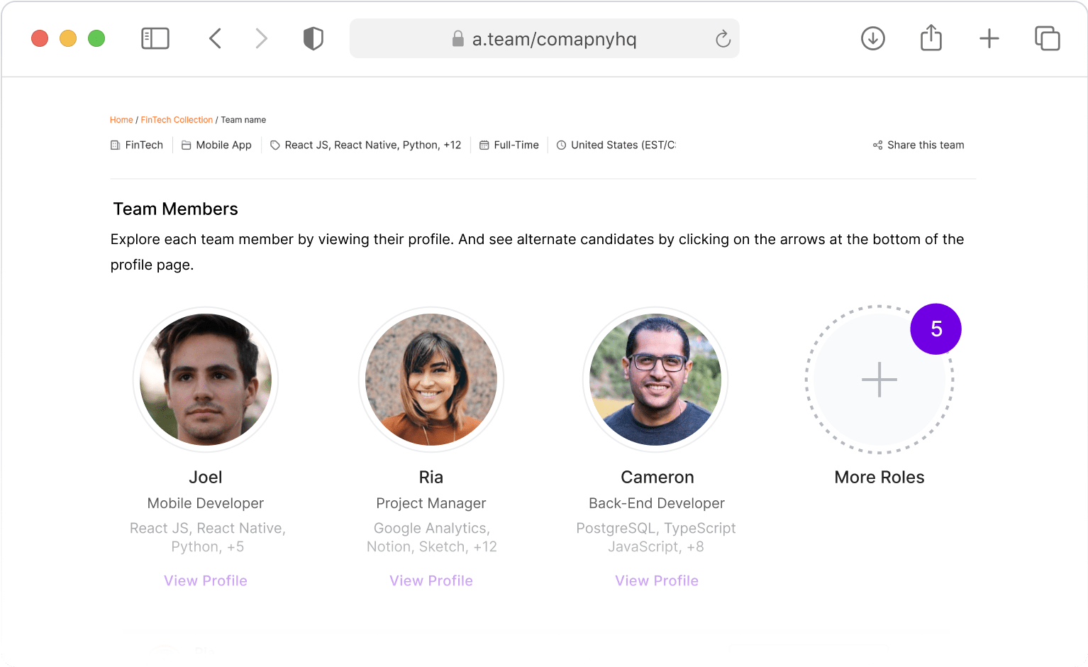 You have a team of all-stars. But to get your product off the ground, you need additional capacity or niche expertise. Add high-quality firepower to accelerate your product development or inject missing skills into your team.