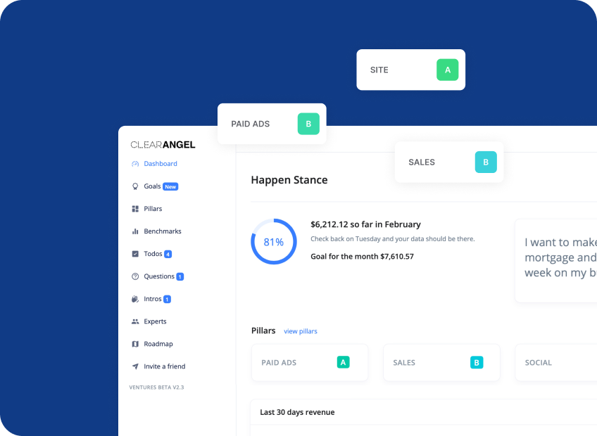 Clearco had the vision of designing an app dedicated to helping founders freely access business advice, capital, and networks. With the help of an A.Team, ClearAngel—the Y Combinator for startups—was born. Through ClearAngel, investors can set goals & benchmarks, build roadmaps, manage introductions, and track funding progress to grow their revenue and scale their business.