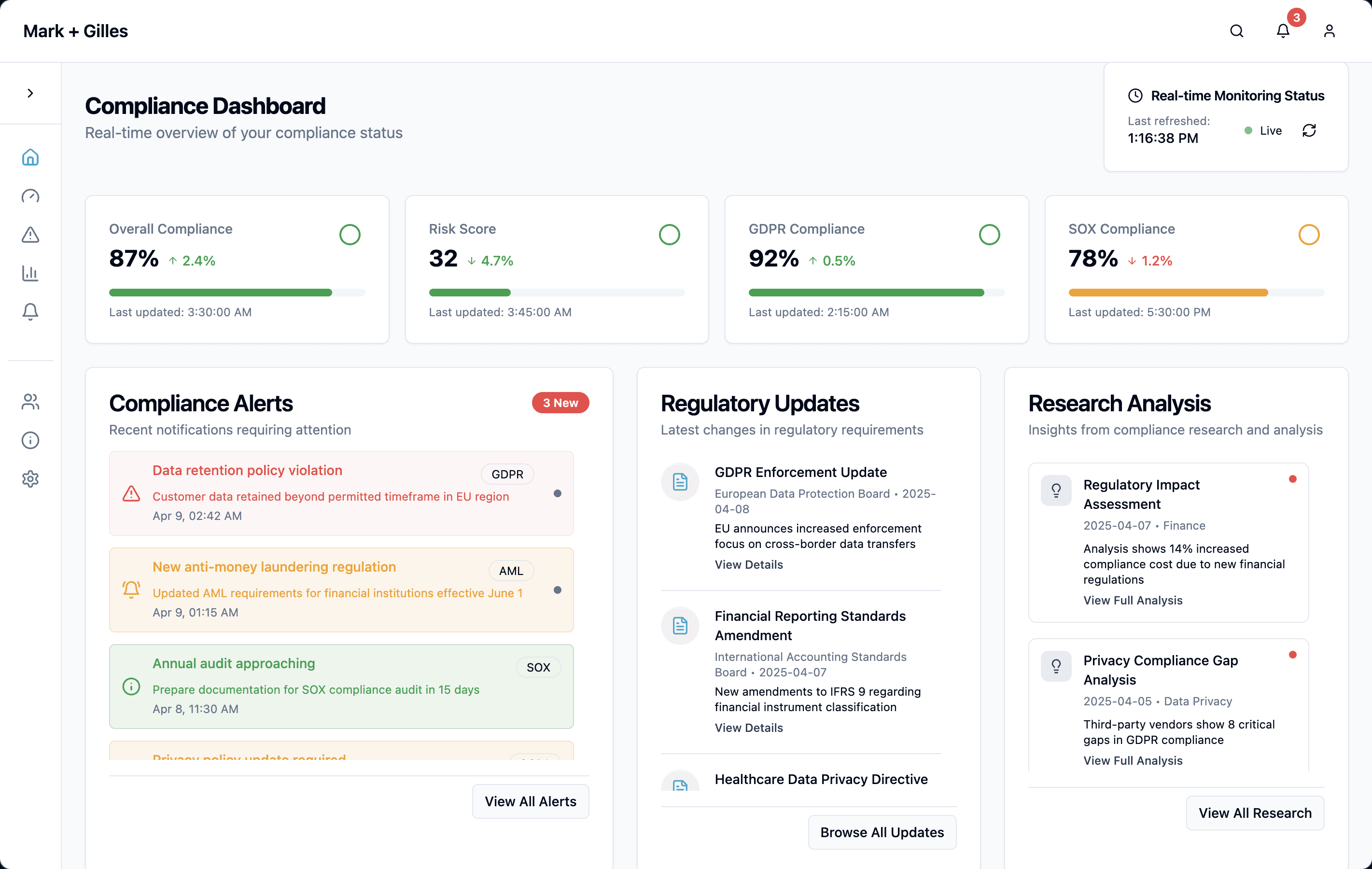 Real-time monitoring of federal, state, and local regulatory changes