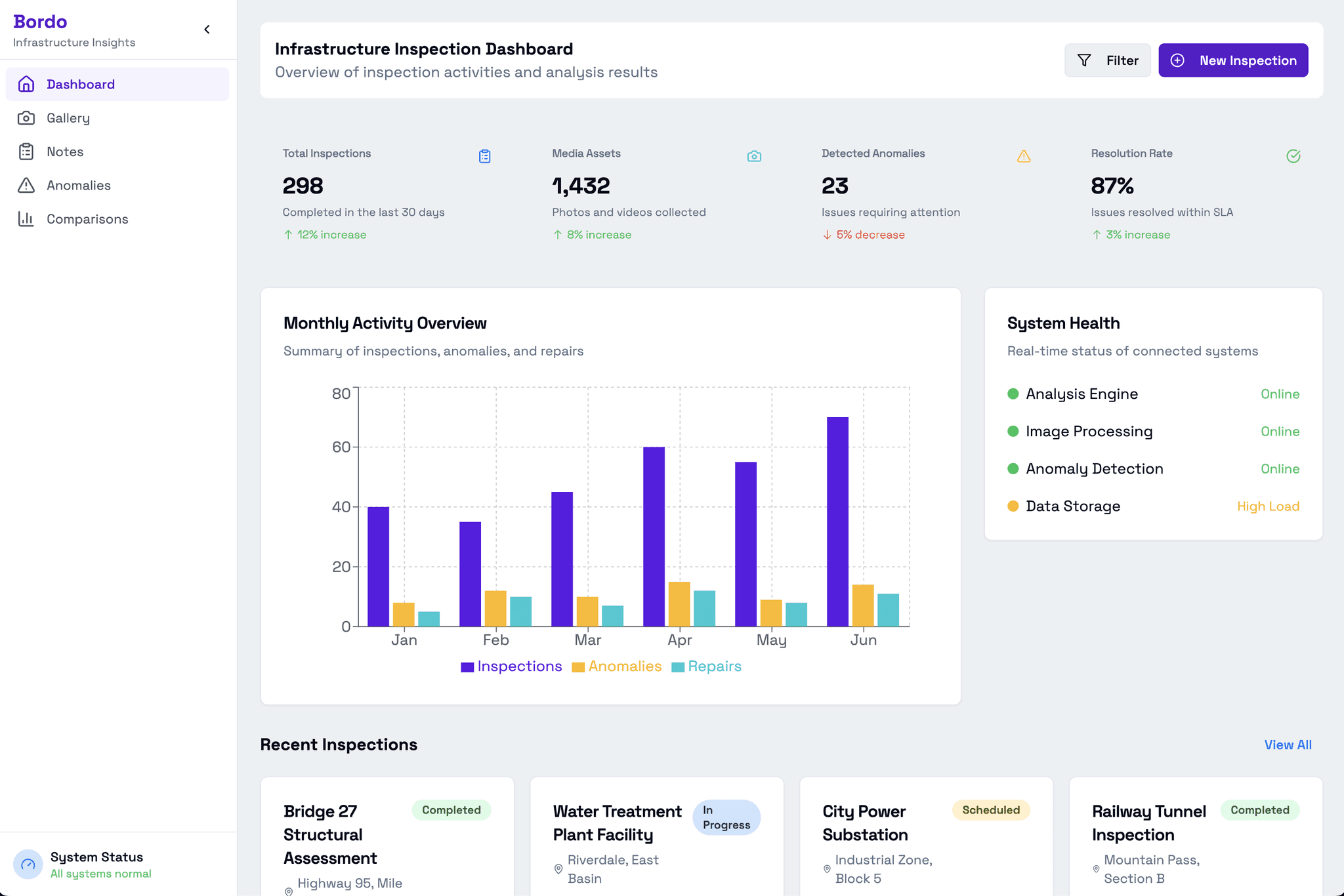 Field inspections generate thousands of photos, measurements, and observations that require manual processing. Our infrastructure inspection agent analyzes multi-modal inspection data to identify issues, prioritize maintenance, and generate comprehensive reports.